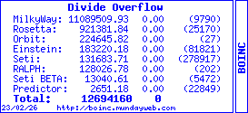Divide Overflow Send message Joined: 3 Apr 99 Posts: 365 Credit: 131,684 RAC: 0