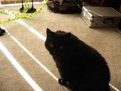 I have two cats who are decent enough to allow me a computer hobby. KT, who pretty much stays in the bedroom unless I am remiss in her food and water quantities. And, Samson, who stays wherever he darn well wants to, who am *I* - a mere mortal - to tell *His Majesty* any different? Sparky *edited to fix link* |