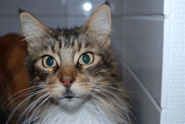 Helllooooooo kitty people... Thanks for the link, Mark. I sent it to my friend, the one with 4 Coons, and she was very happy for it. She just mailed me and told me that her Raffe (you remember Raffe, Rafael Firefox, the red kitty she got?) can stand on his hind legs and reach up to the kitchen table as well. He is really big, and his sister, Rosa, is almost as big. "I'm trying to maintain a shred of dignity in this world." - Me